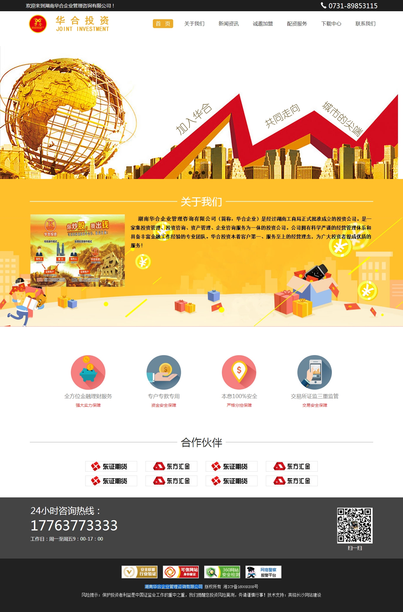 湖南华合企业管理咨询有限公司(简称:华合企业)是经过湖南工商局正式批准成立的投资公司。是一家集投资管理、投资咨询、资产管理、企业咨询服务为一体的投资公司。公司拥有科学严谨的经营管理体系和具备丰富金融工作经验的专业团队。华合投资本着客户第一、服务至上的经营理念,为广大投资者提成优质的服务!